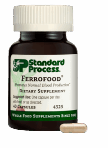Anyway, for people who need iron support, we recommend Ferrofood, which is a liver based supplement that will increase iron in weeks. Typically after a 120 day cycle, the person can use a very small maintenance dose to support red blood cells.