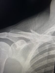 About 4 miles into the ride, I clipped my son’s rear tire and went down hard. I knew before I hit the ground that I was about to break my first bone. I landed forcefully on my shoulder and head. When I stood up, I could feel my collarbone moving in ways God never intended.