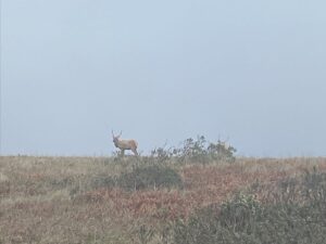 This trip was not near as scenic as the times we’ve been there before because we were stuck in fog. We were teased with a couple of times we could peek at the Pacific Ocean. That said, the park was full of elk! As we were walking back, we were admiring a ground of about 20 cow elk and one small bull that were literally right off the path by no more that 15- 20 yards.