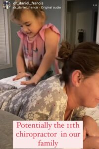 Above is some pictures of my great niece adjusting her mother. I believe based on this video we have potentially landed the 11th chiropractor in our family. She is actually quite good at just 2 years old. I hope I am able to practice with her someday 🙂